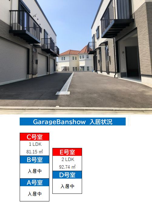 A・B・C号室は、車を2台置けるワイドガレージ、D・E号室は1台分のガレージに、愛車を眺めながら過ごせる7帖洋室を併設!
